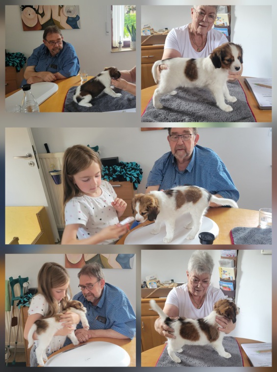 Langsam wird es ernst, heute erst einmal Wurfabnahme mit Byrgit Bayer-Kissing, und schon sind die Tage bis zum Auszug gezählt.